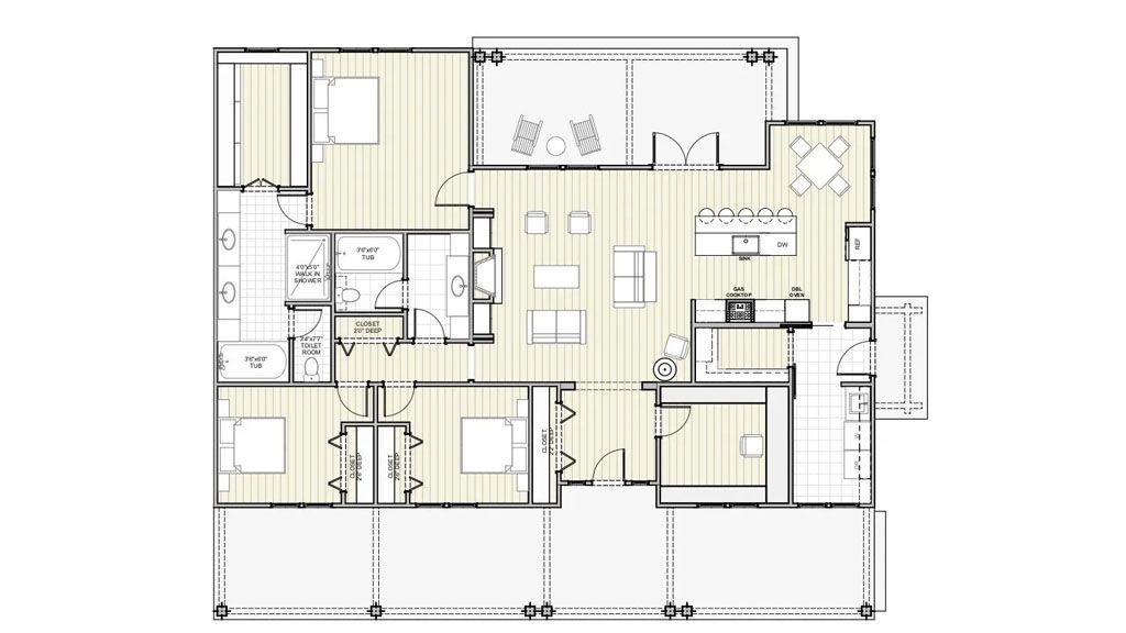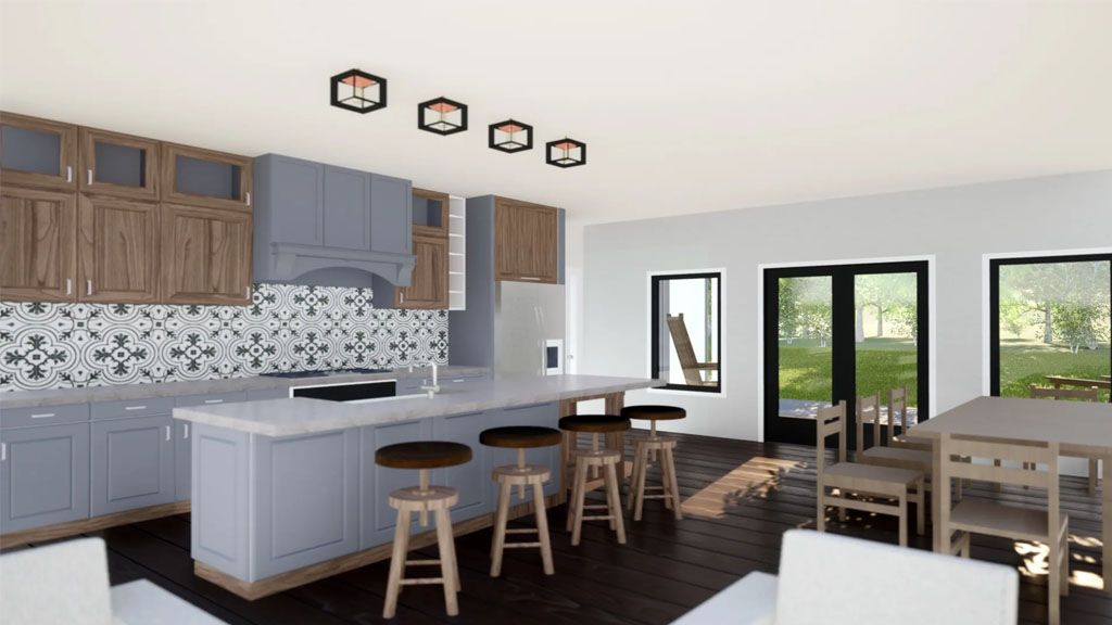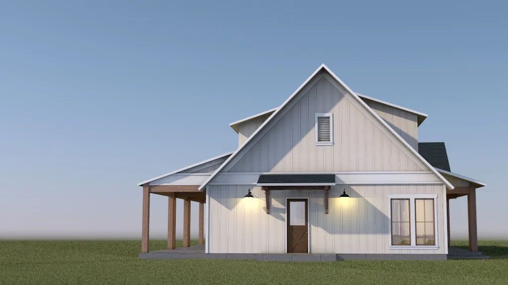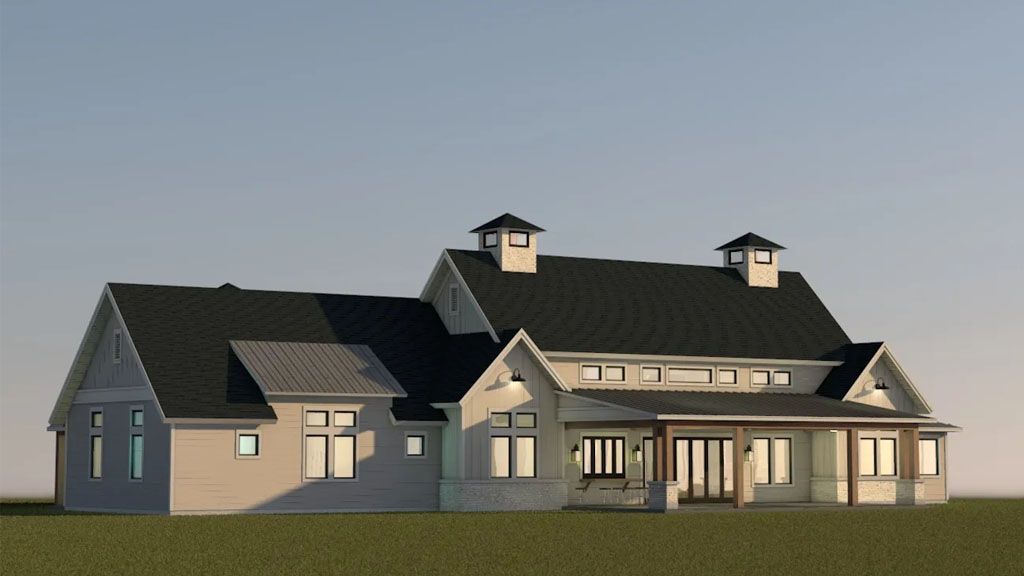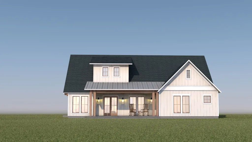This small but comfortable Modern Country House is for a small and practical family. It features a central gathering area as the heart of the house. Also, we designed it to enjoy the views of the backyard, adding a sizeable Covered Patio out of that gathering space to enjoy the outdoor living.