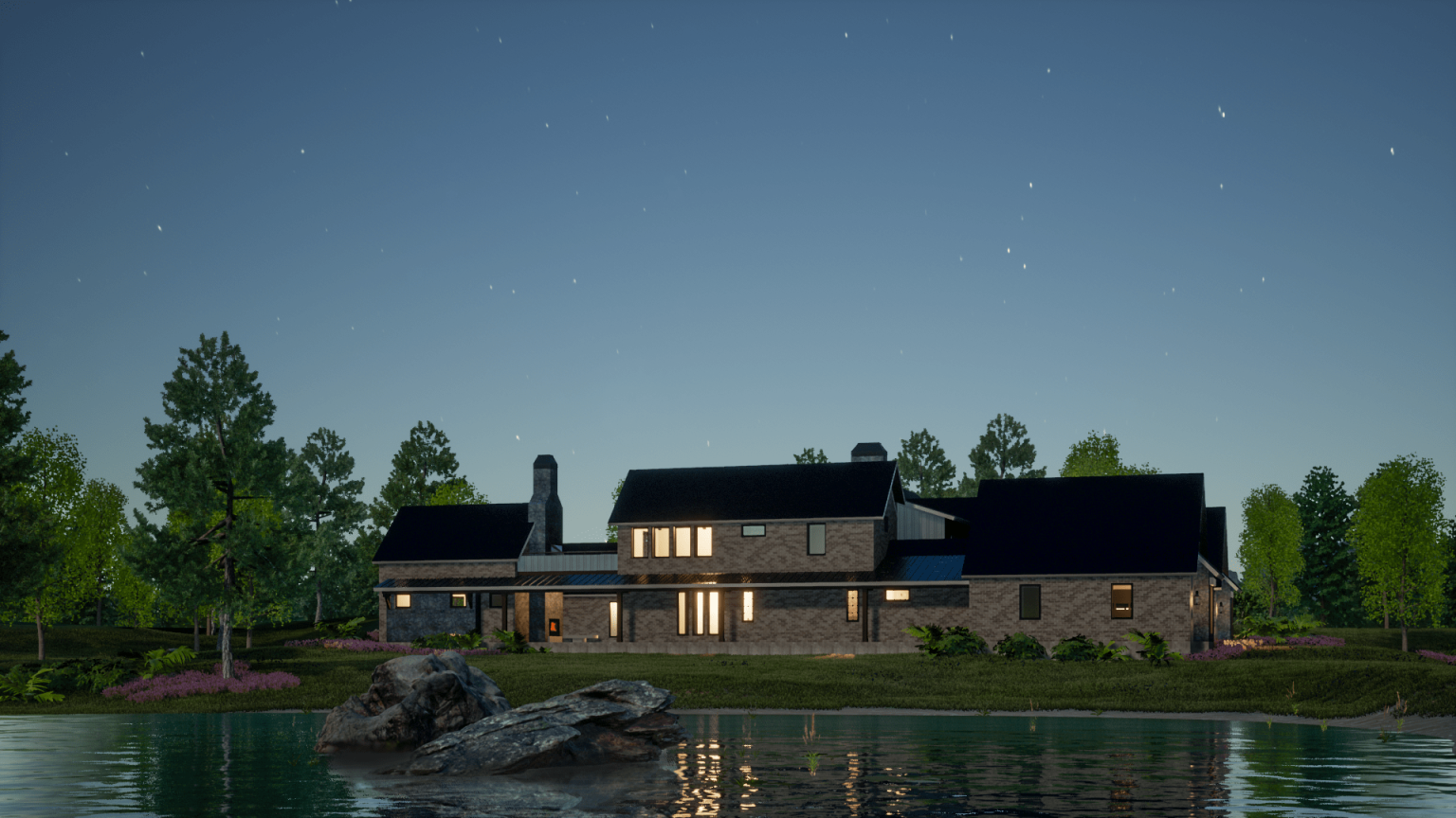 Farmhouse with a Pond