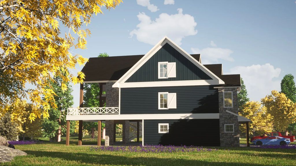 This three-level house features its main floor on the second level, which is the street level. It showcases a traditional farmhouse vertical gabled element that emphasizes the Main Entrance. After the Foyer, we find the Great Room, a large container of all the social activities. Every space is seamlessly interconnected, and enjoy the stunning views through a terrace running along with the great room.