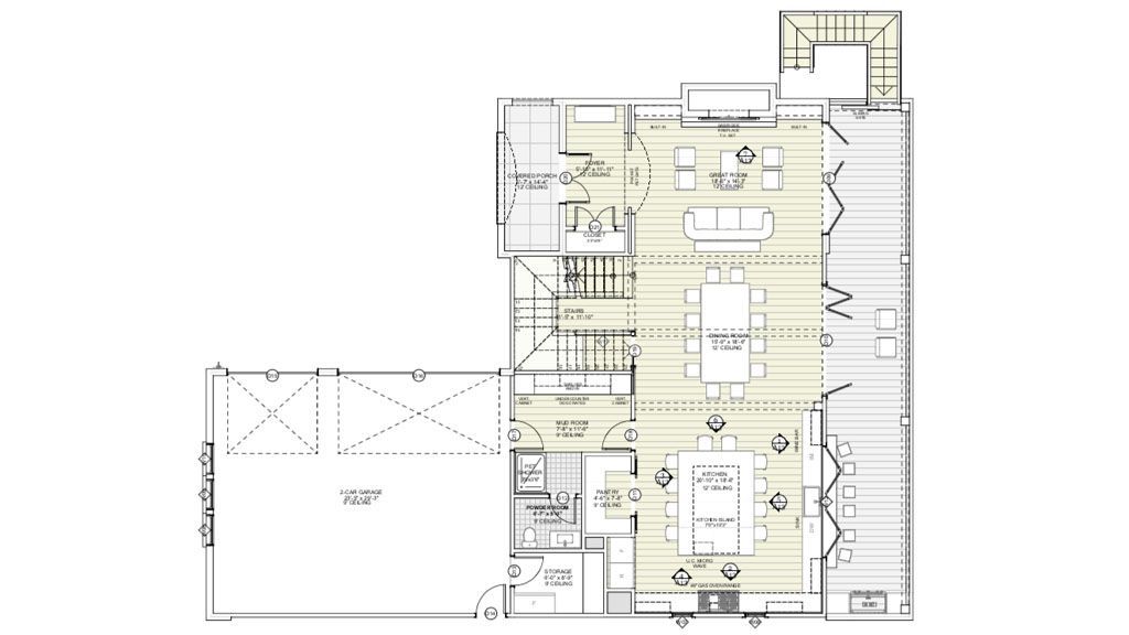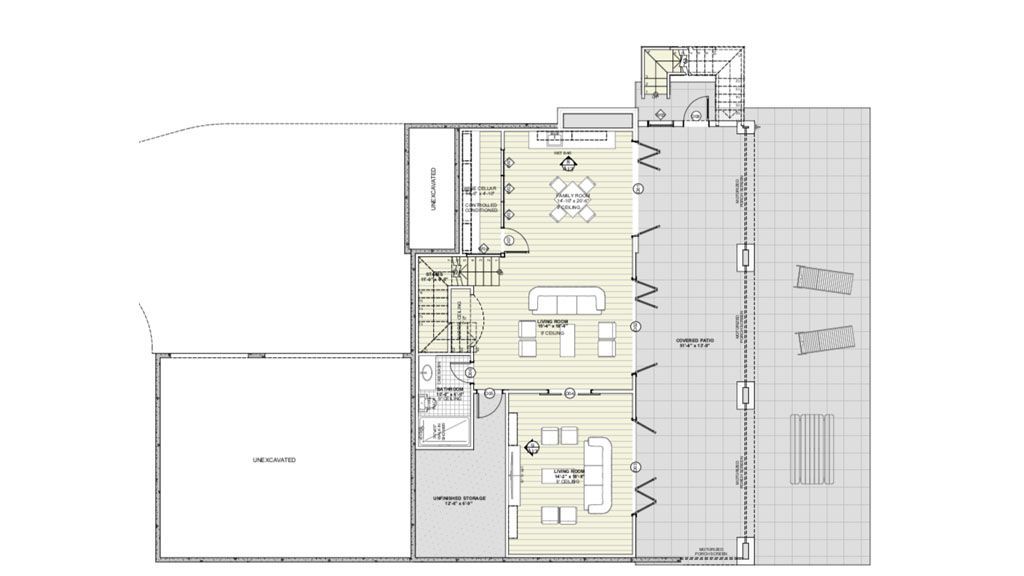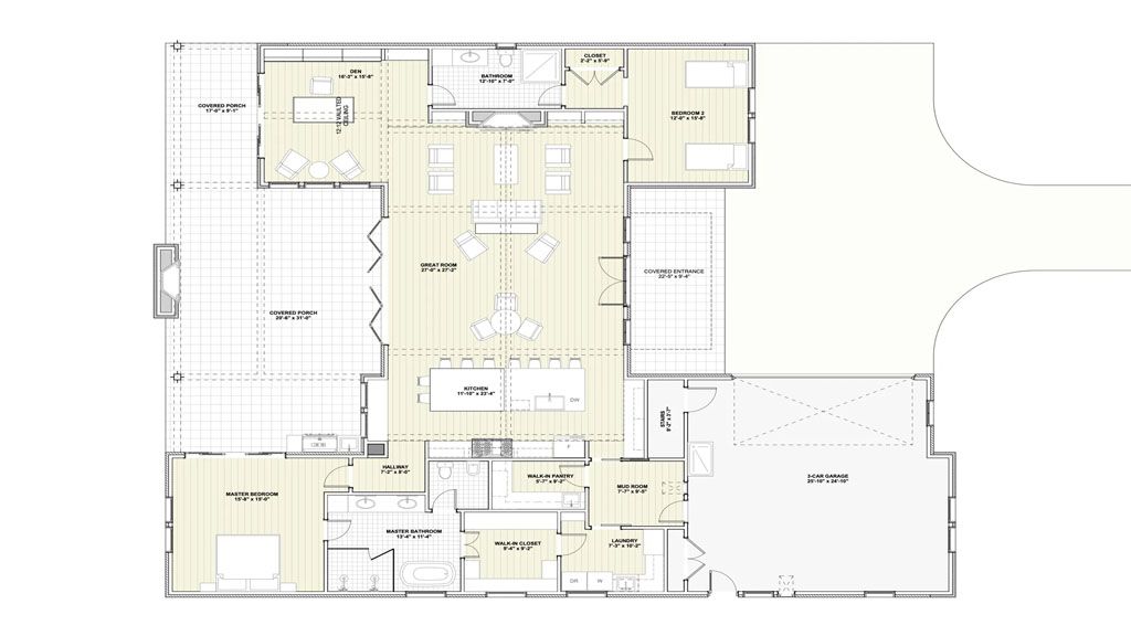 The Great Room opens to the Covered Patio through gorgeous french doors that allow us to connect the indoor and outdoor spaces. That space is large enough to accommodate furniture options. We also have an outdoor sitting bar area with a pass-through window from the kitchen.