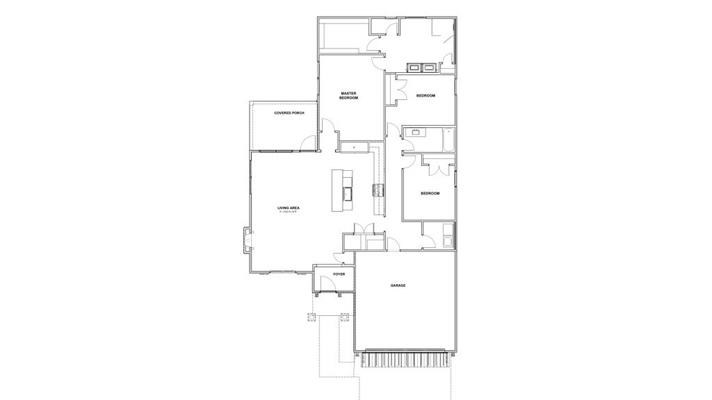 There is a Covered Patio on the rear whit space for an Outdoor Living area and an Outdoor Cook Space, which connects to the Kitchen using a pass-through window.