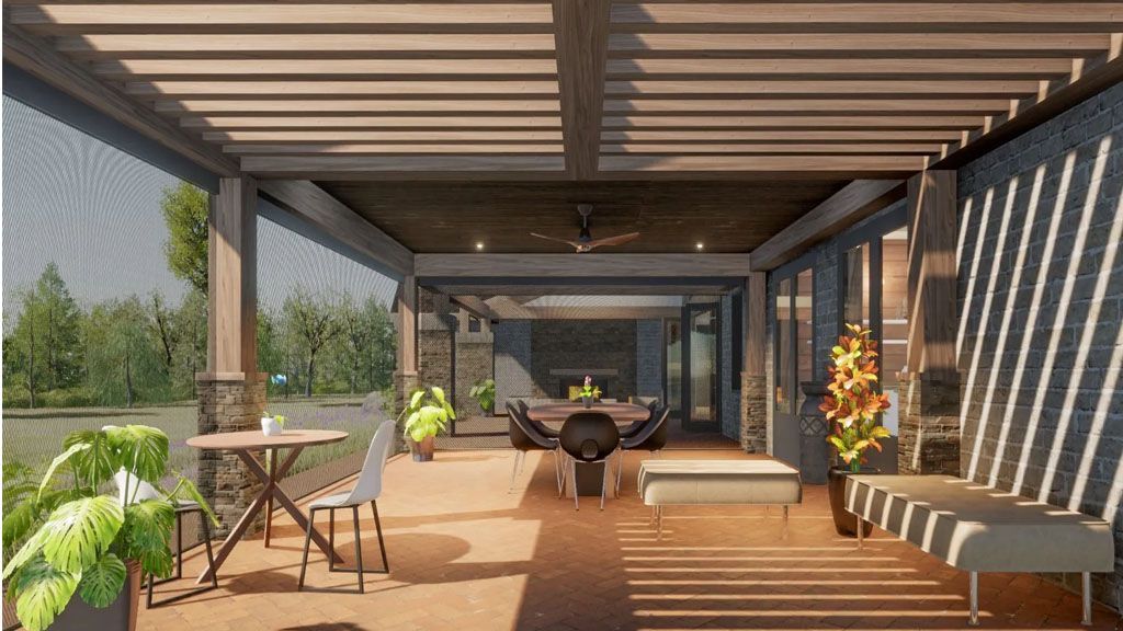The Covered Patio seamlessly connects with the Great Room through gorgeous french doors that allow us to bring the outdoor spaces indoors. That outdoor space is large enough to accommodate furniture options and Outdoor Cooking amenities.