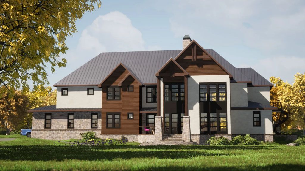 The Modern Mountain Style Lake House Plan is designed for a social family, constantly gathering and welcoming guests. We placed all the main spaces and a stunning view that everyone wants to enjoy. We also designed it to be seen since it shows excellent elevations on the front and the house’s rear.