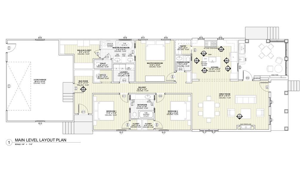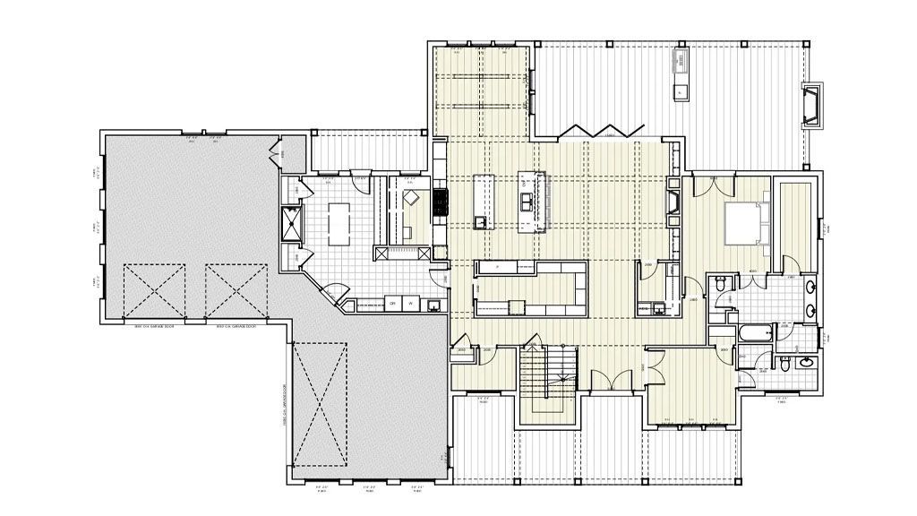 This New Traditional house has a welcoming entrance with a Covered Front Porch crowned with three gables. The main entrance leads to a Foyer where you have direct access to a Studio and the Main Hall Way. That hallway leads you to a Master Suite on one end and the Walk-In Pantry on the other end.