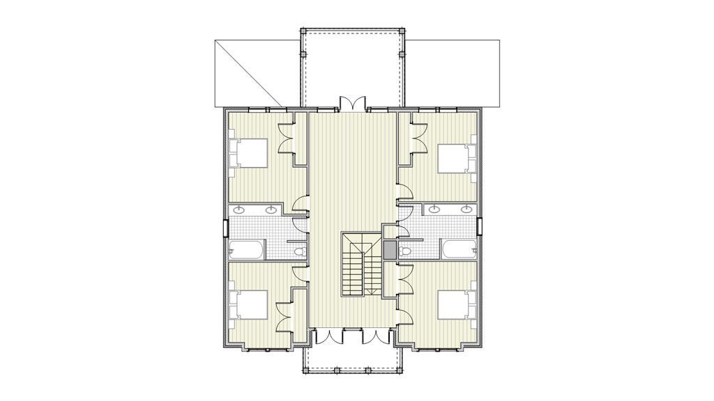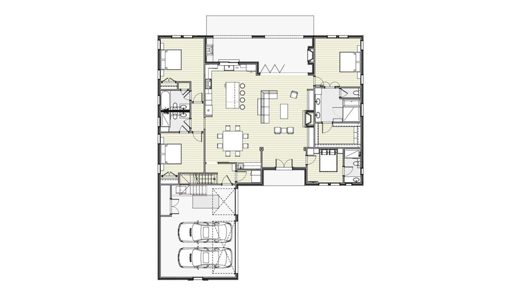 The Upper Floor is structured around Family Social Spaces, the Game Room and a Kid’s Study. Around them are the secondary bedrooms and the Master Suite