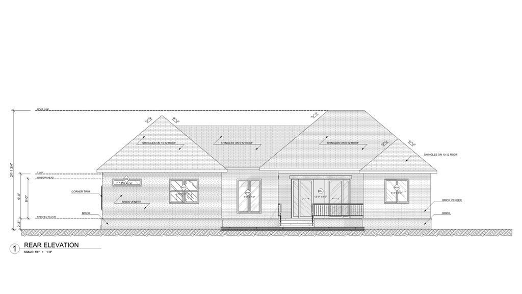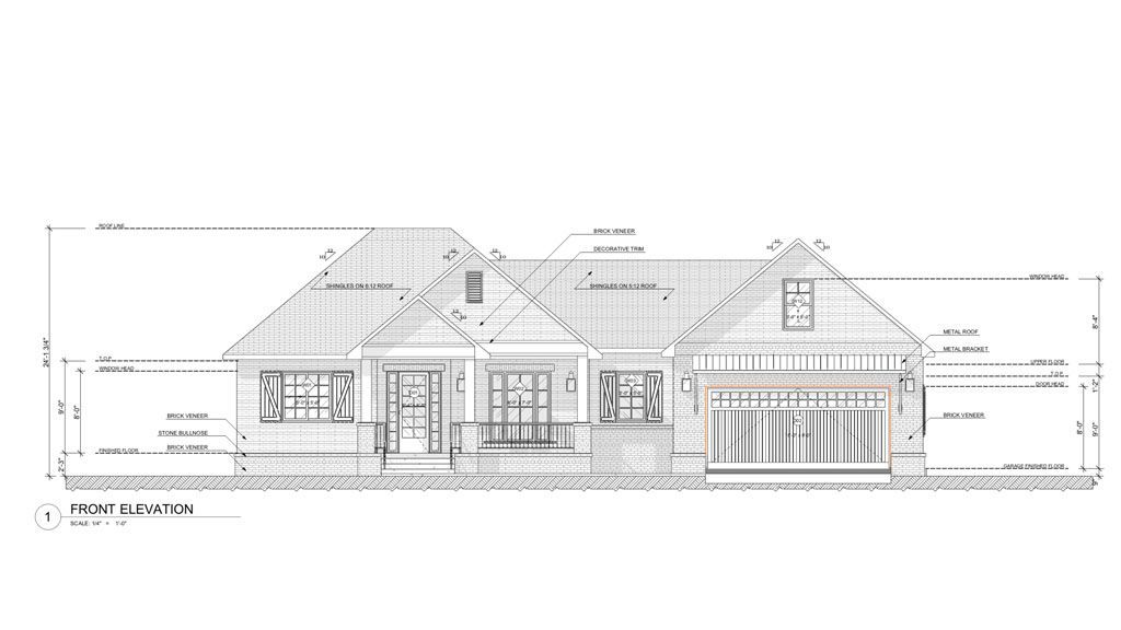 The exterior is finished with distressed tan brick in combination with traditional brick. Wood-stained framing all around and classic details and accents on different elements like awnings and railings complete the traditional look requested by the developer.