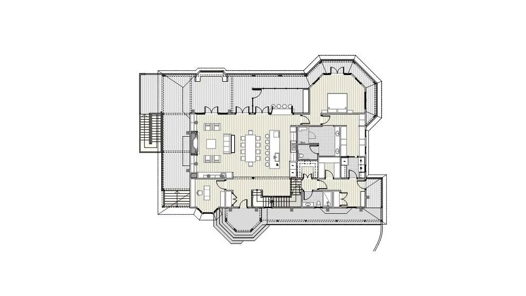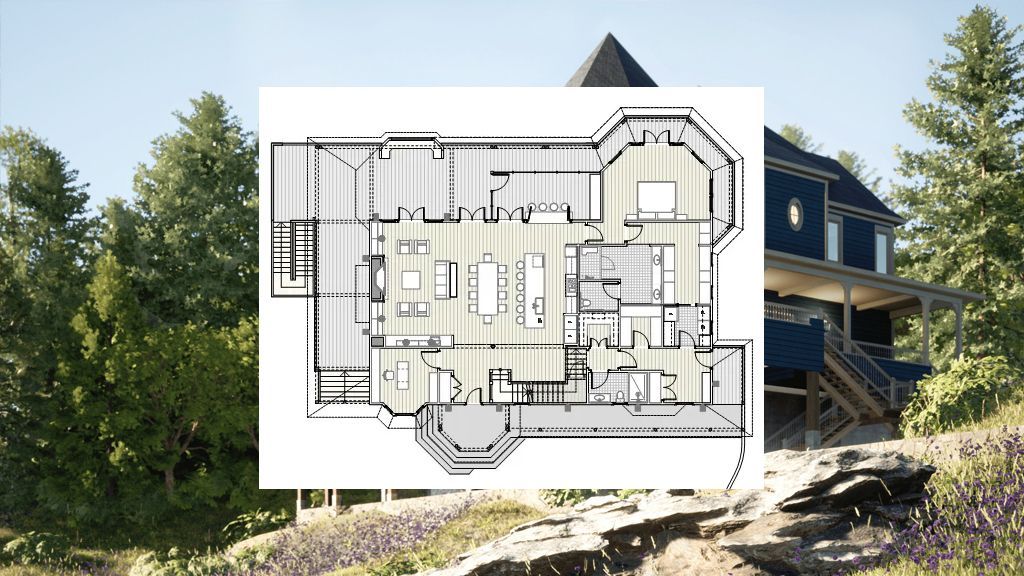 The White Traditional house sits on a slope overlooking Rock Creek’s woods. It showcases a revival of a traditional house style. A retired couple dreamed of this house to live in and welcome an extended family willing to spend full seasons together at the lake.