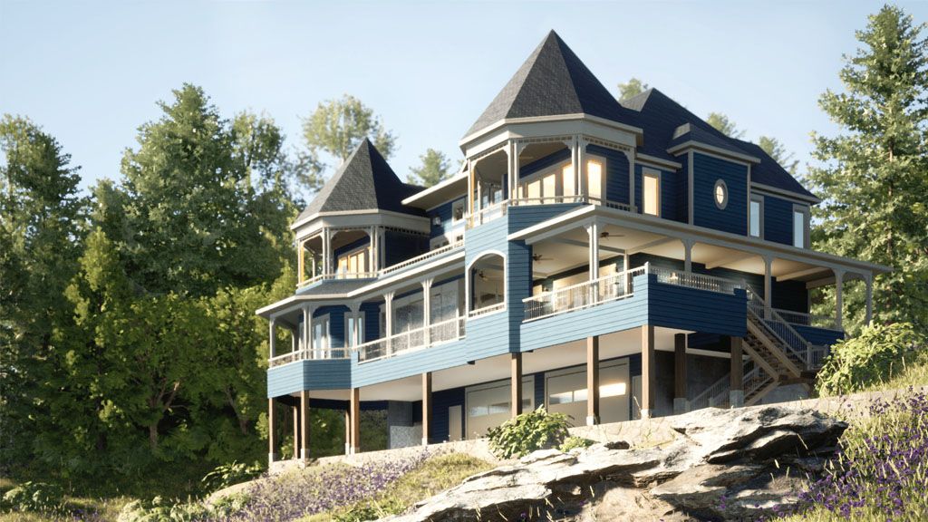 This Victorian style house was designed for an extended family. Every member is getting their space and necessary amenities to have a great life at the lake. The kids of this family will have great memories to treasure from this place. The house is on a hill surrounded by so many trees that you can barely see it when approaching. It is a surprise waiting to amaze you after a turn.